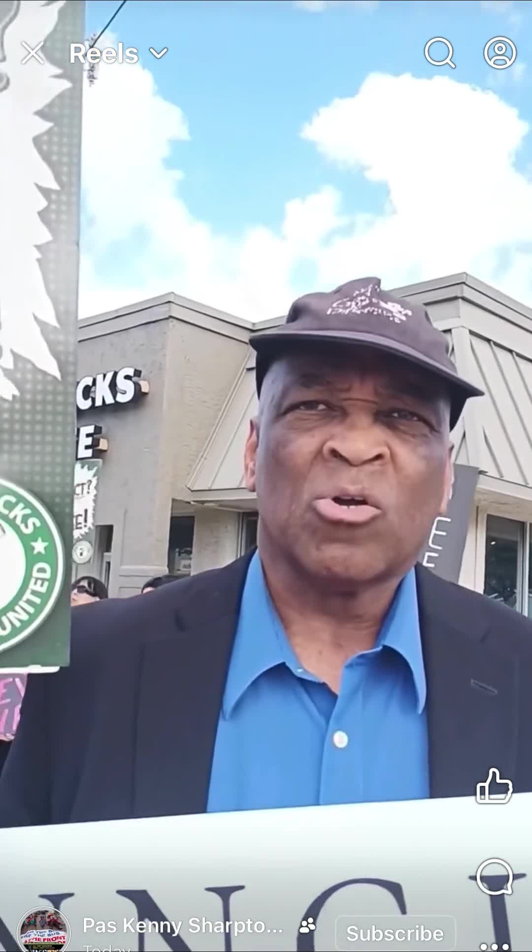 NNCLM Vice President Dr Byron Clay supporting Starbucks employees in their quests for a contract with higher wages from Starbucks. NO CONTRACT / NO COFFEE